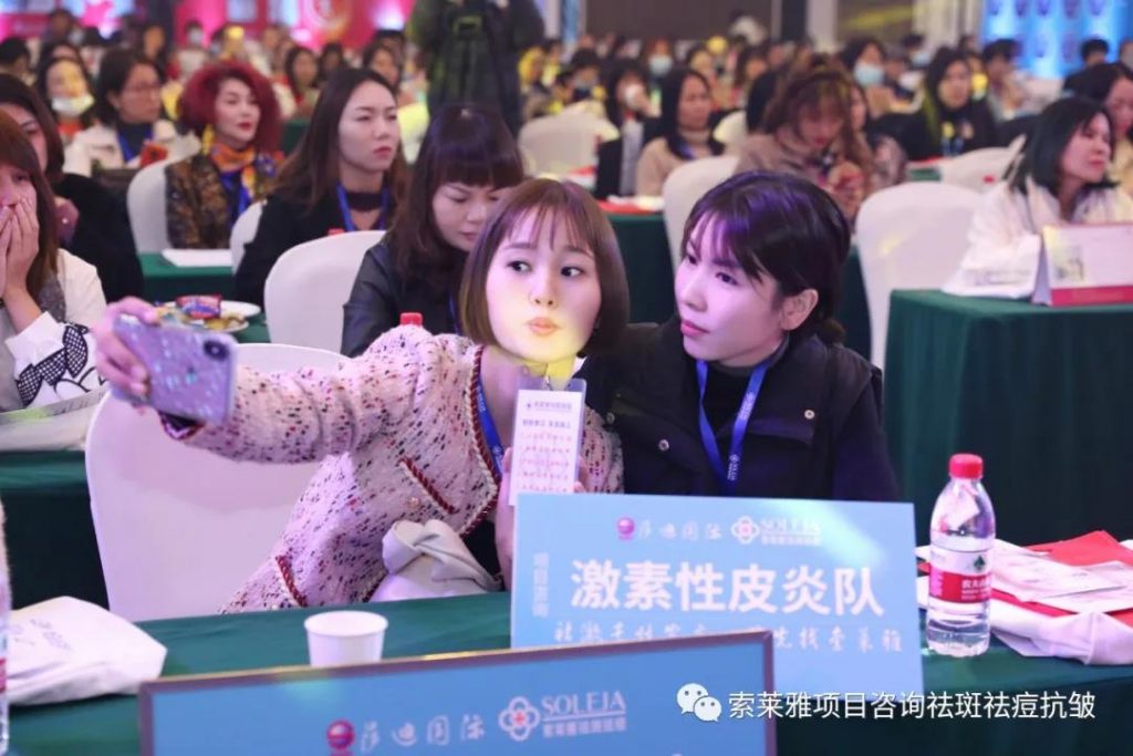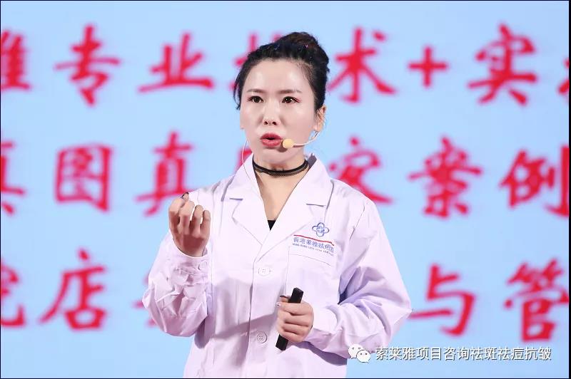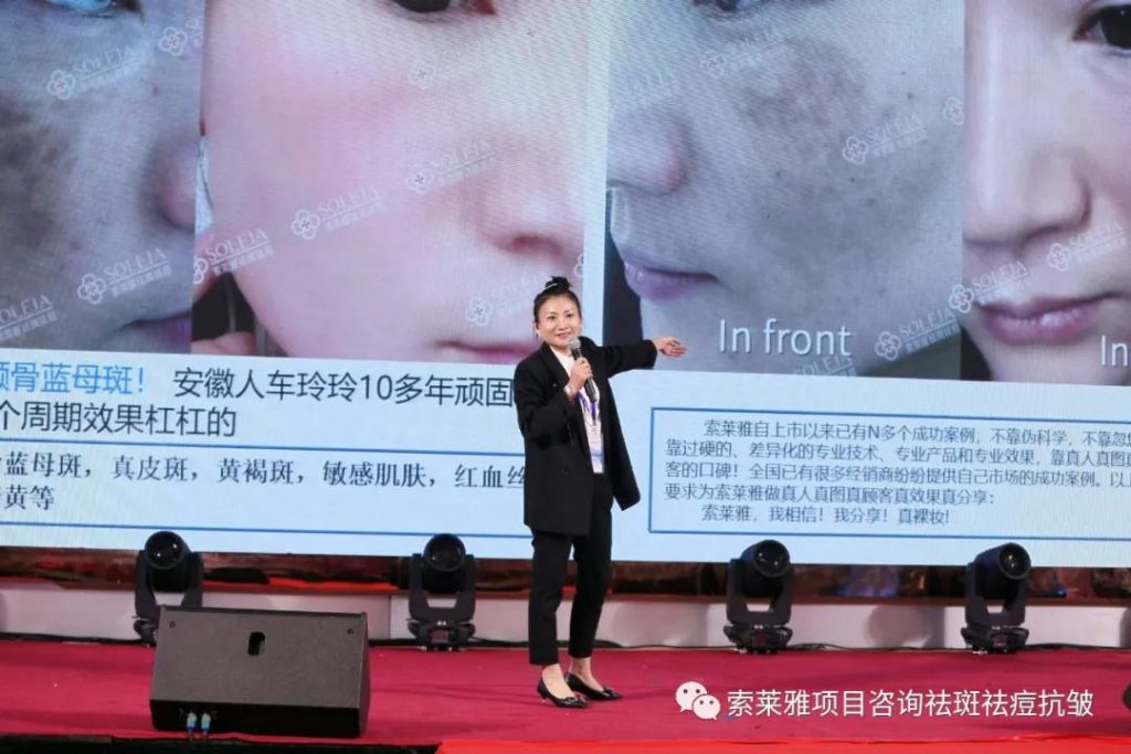 【笔者问车玲玲,你为什上台分享?车玲玲说,索莱雅把我10多年的真皮斑顽固斑做的干干净净!】