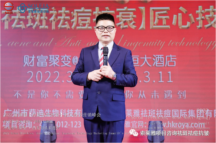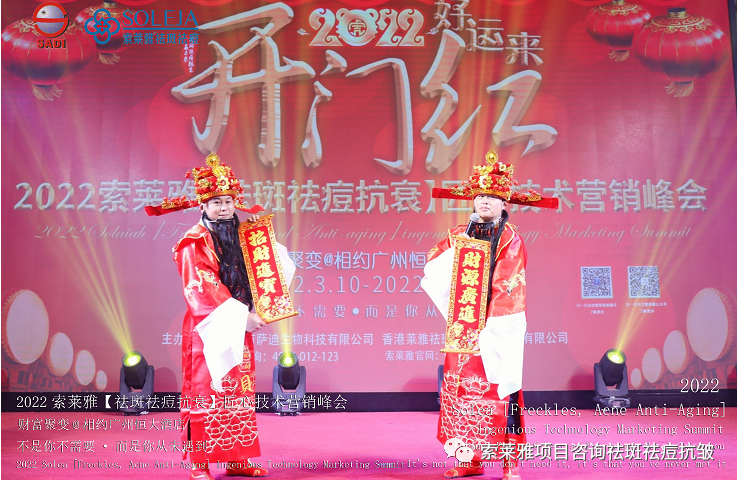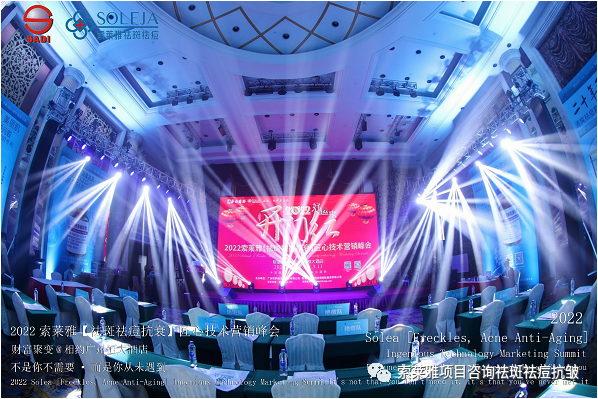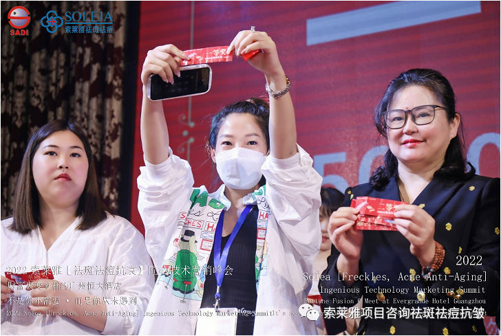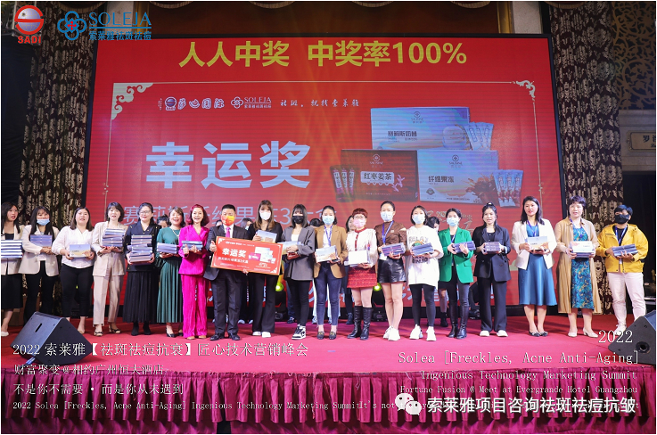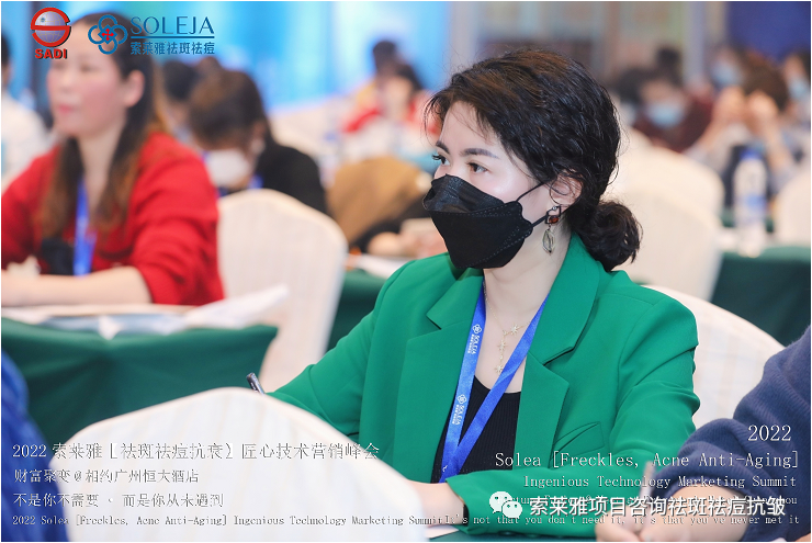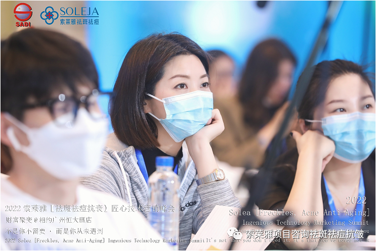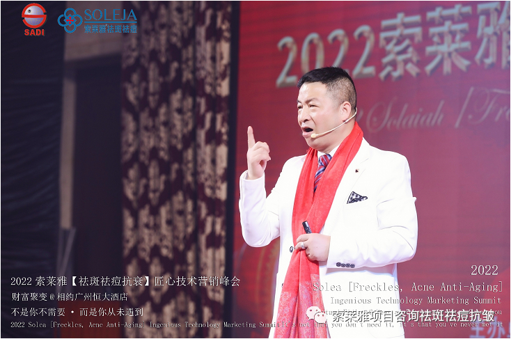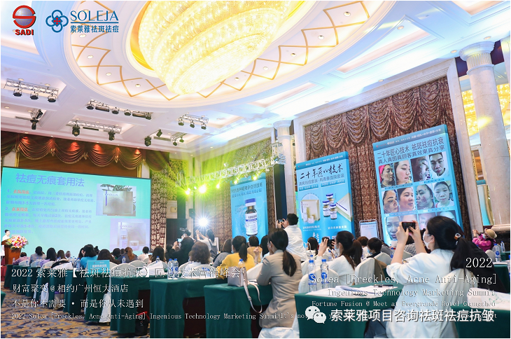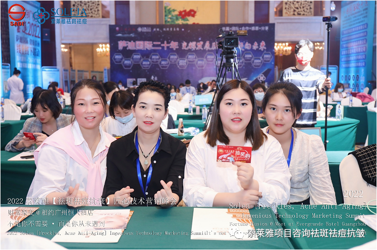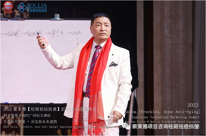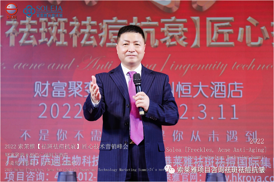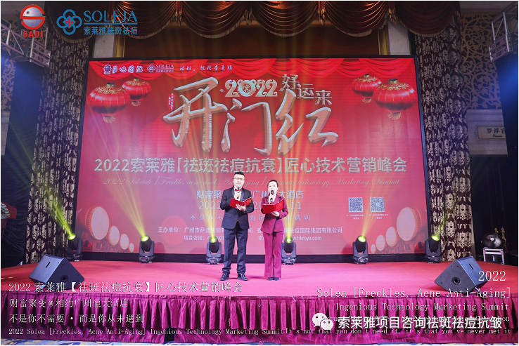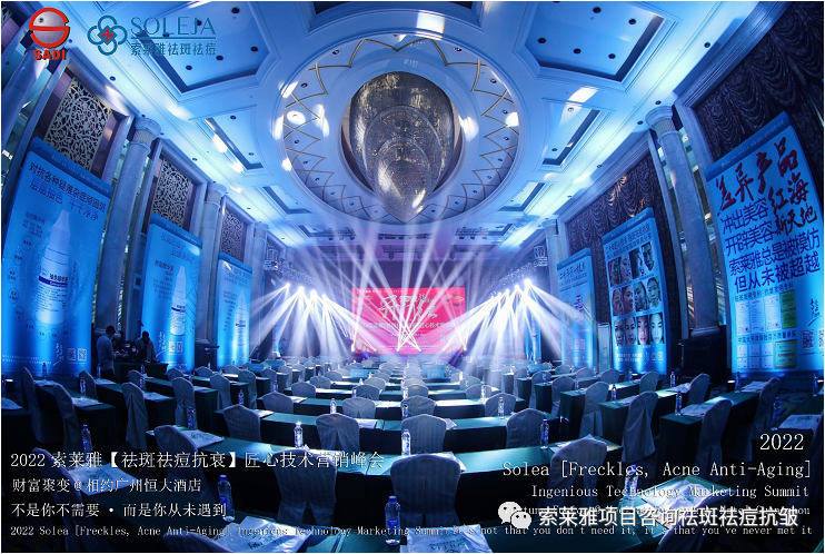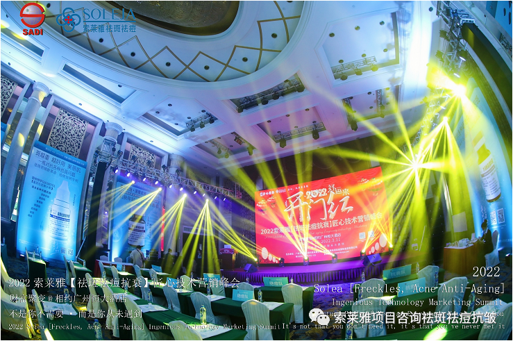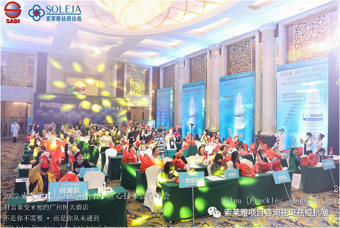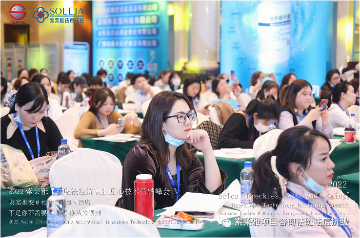 不管外部环境如何变化,索莱雅人不忘初心,始终如一,20年专业专注疑难杂症问题性皮肤:斑、疤痕、痘痘、激素性皮炎、抗皱等五大刚需项目。索莱雅冲出美容“红海”, 开劈了美容“新天地”,2022索莱雅开门红好运来【祛斑祛痘抗衰】匠心技术营销峰会于2022年3月10-11日在广州恒大五星酒店激情活力!圆满成功!