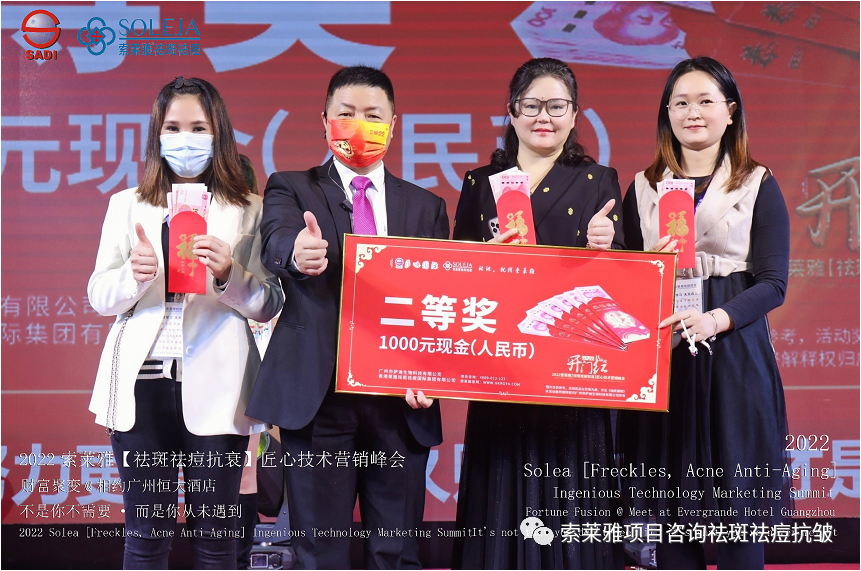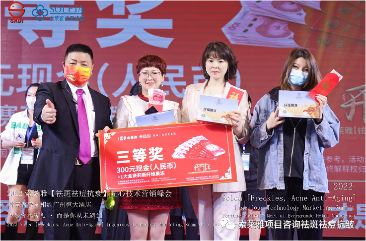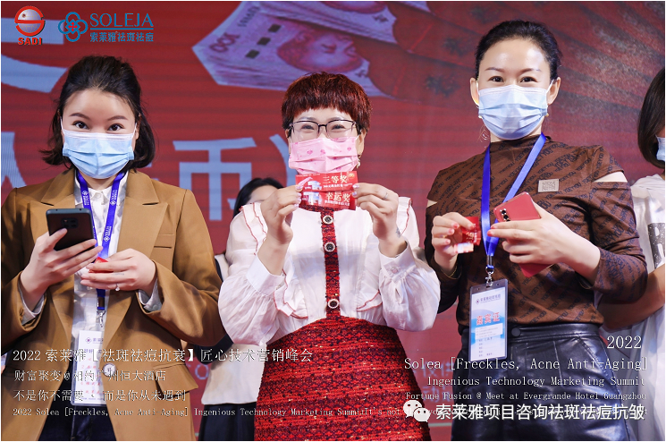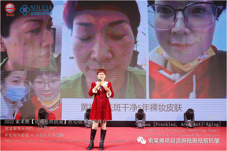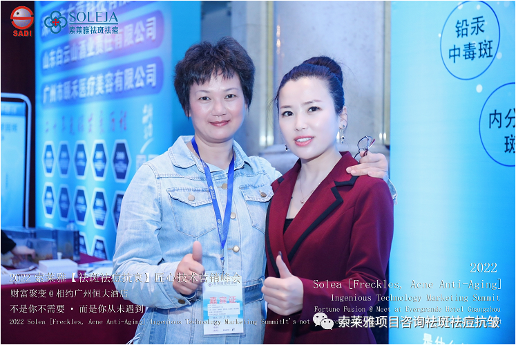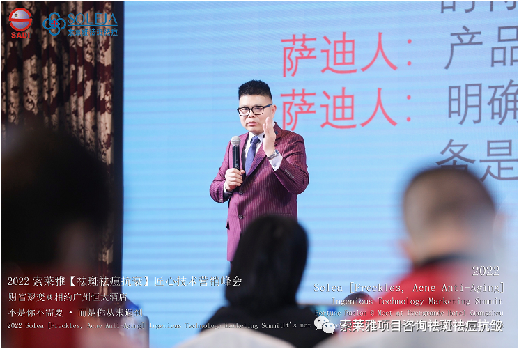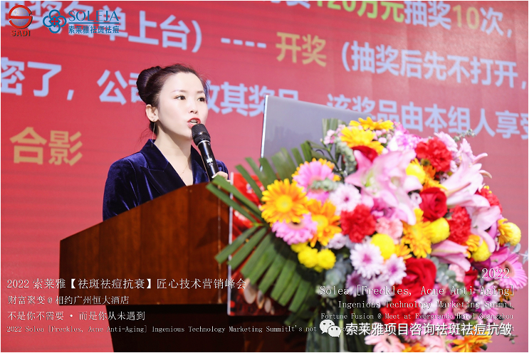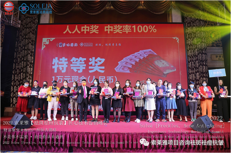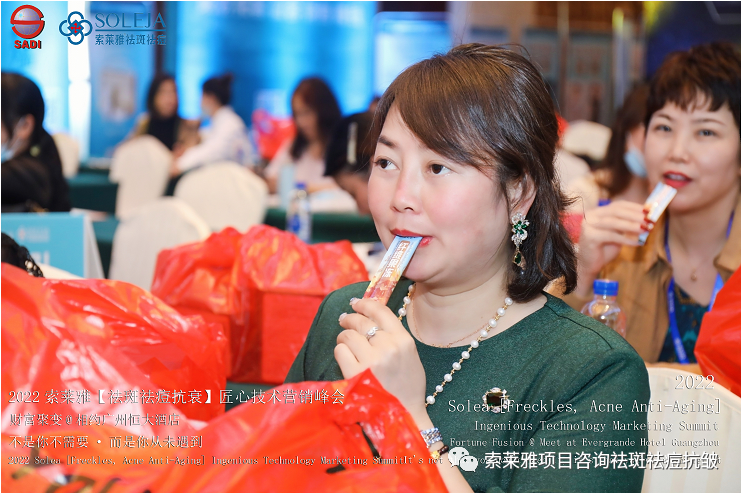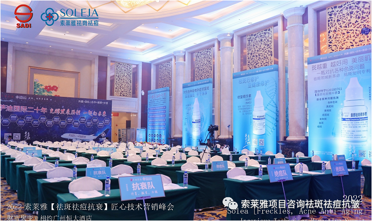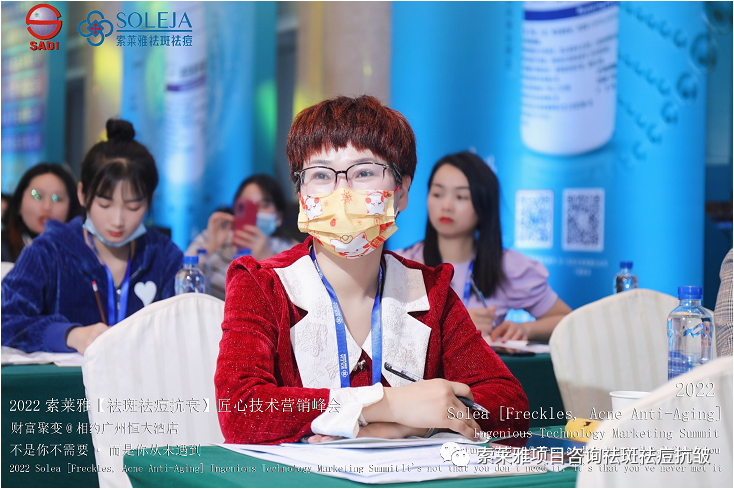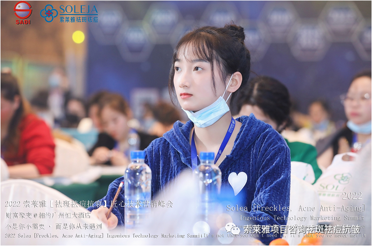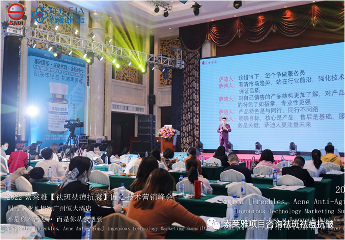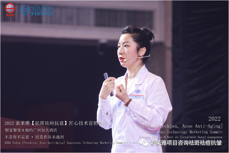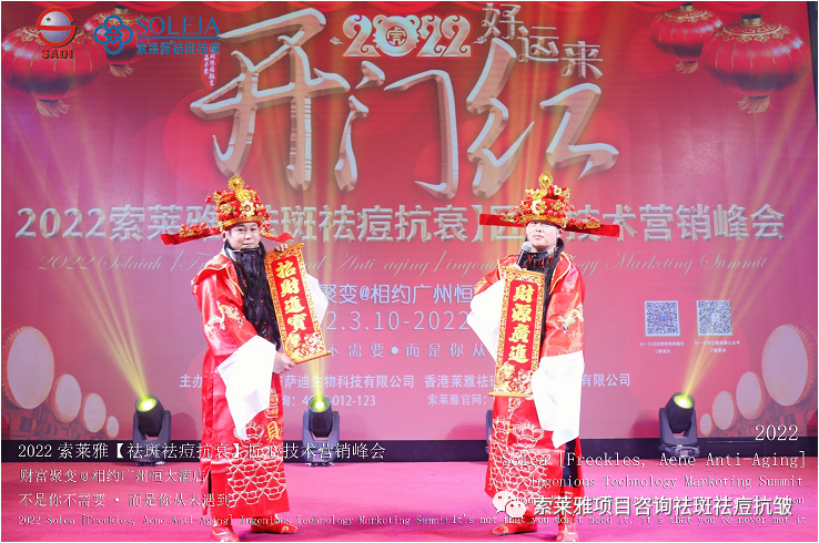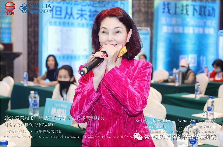 不管外部环境如何变化,索莱雅人不忘初心,始终如一,20年专业专注疑难杂症问题性皮肤:斑、疤痕、痘痘、激素性皮炎、抗皱等五大刚需项目。索莱雅冲出美容“红海”, 开劈了美容“新天地”,2022索莱雅开门红好运来【祛斑祛痘抗衰】匠心技术营销峰会于2022年3月10-11日在广州恒大五星酒店激情活力!圆满成功!