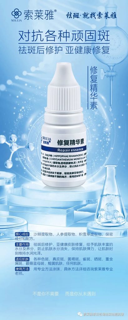 祛斑必搭【水润新肌精华液】,因为长斑皮肤的角质层几乎99%的角质层被损伤,所以,把斑祛干净后,必须彻地修护!